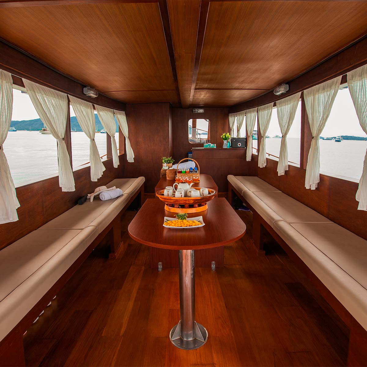 Uncover the hidden gems of Phuket’s islands aboard a classic wooden big boat. With its vintage charm and luxurious amenities, our elegant vessel offers a refined way to explore the breathtaking scenery and tranquil waters around Phuket. Book your memorable island adventure now!